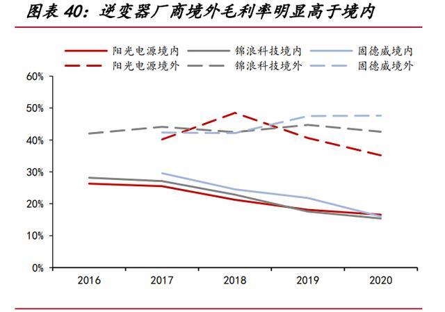 2)競(jìng)爭(zhēng)加劇縮減海外市場(chǎng)利潤(rùn)空間。目前逆變器在海外市場(chǎng)的銷(xiāo)售相較國(guó)內(nèi)享有較高的溢價(jià),隨著國(guó)內(nèi)廠商在全球市占率的不斷提升,如果廠商之間因搶占市場(chǎng)份額而大打價(jià)格戰(zhàn),導(dǎo)致海外逆變器價(jià)格下降速度超預(yù)期,行業(yè)整體的利潤(rùn)空間將萎縮。