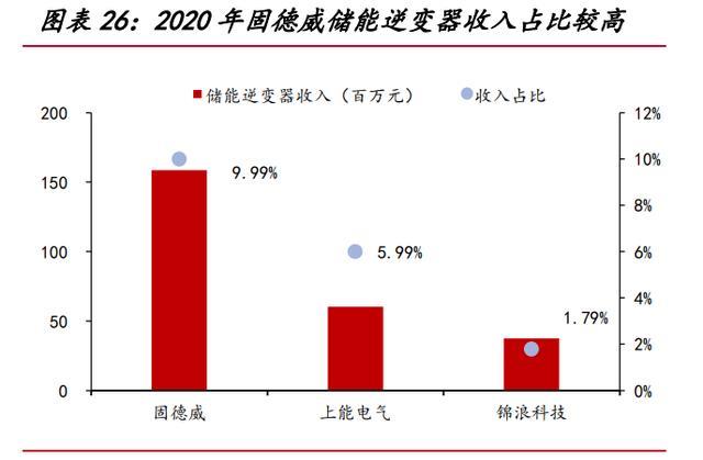 固德威儲(chǔ)能逆變器收入占總收入比重最大,2020年收入1.59億元,占總收入9.99%;據(jù)Wood Mackenzie統(tǒng)計(jì),2019年固德威戶(hù)用儲(chǔ)能逆變器出貨量全球第一,市場(chǎng)占有率為15%。上能電氣和錦浪科技積極進(jìn)行儲(chǔ)能產(chǎn)品的擴(kuò)產(chǎn),上能電氣2020年實(shí)現(xiàn)儲(chǔ)能雙向變流器及系統(tǒng)集成產(chǎn)品6014.57萬(wàn)元,公司將上市募集資金中的8442萬(wàn)元用于建設(shè)儲(chǔ)能雙向變流器及儲(chǔ)能系統(tǒng)集成產(chǎn)業(yè)化項(xiàng)目,預(yù)計(jì)在2021下半年建成投產(chǎn);錦浪科技2020年儲(chǔ)能逆變器收入3733.33萬(wàn)元,2021上半年收入6642.82萬(wàn)元,通過(guò)定增募投新建10萬(wàn)臺(tái)儲(chǔ)能逆變器產(chǎn)能,預(yù)計(jì)將于2021年內(nèi)投產(chǎn)。