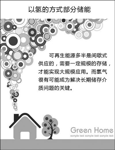 它的工作原理是這樣的:當(dāng)陽(yáng)光照射到太陽(yáng)能電池板上時(shí),會(huì)產(chǎn)生電能,其中大部分用于給建筑物供電。如果電能出現(xiàn)了盈余,便可以用做儲(chǔ)備能源,將氫氣從水中分解出來(lái)。如果太陽(yáng)光不好,氫氣便可以再提取出來(lái)用于發(fā)電。