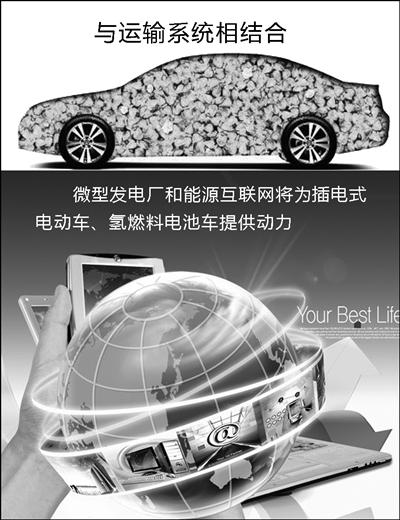 最后一個(gè)支柱是運(yùn)輸,它是整個(gè)體系向第三次工業(yè)革命邁進(jìn)所不可缺少的。建筑物轉(zhuǎn)變成小型發(fā)電廠和創(chuàng)建能源互聯(lián)網(wǎng),使這些基礎(chǔ)設(shè)施可以為插電式電動(dòng)車、氫燃料電池車提供動(dòng)力。