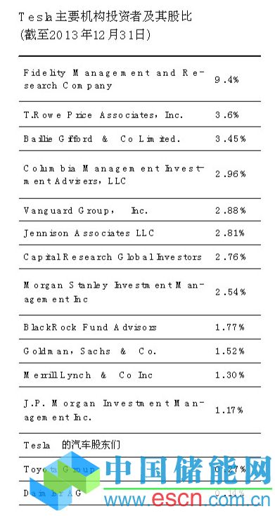 當(dāng)然,讓華爾街幾乎所有知名投資機(jī)構(gòu)都持股特斯拉(詳見附表)的原因卻并不全是硅谷成功者的光環(huán)?!罢J(rèn)真的說,特斯拉還得算價(jià)值型的企業(yè)吧,資本市場(chǎng)會(huì)賭它有可能成功?!比疸y集團(tuán)的一位投資顧問解釋,在資本眼中,行業(yè)裂變是可以短時(shí)間完成的,就像蘋果手機(jī)取代諾基亞,就是忽如一夜春風(fēng)來,滿街都是iphone 4的節(jié)奏,其間并沒有一個(gè)過渡帶?!皬倪@個(gè)角度來看,特斯拉可能就是汽車界的蘋果,它有可能就取代了通用、取代了大眾。”