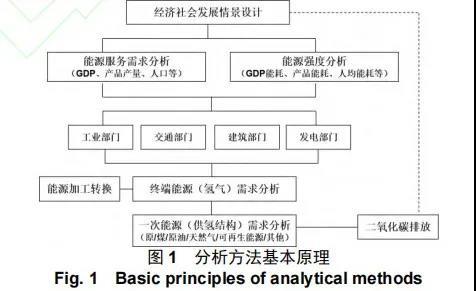本研究選用情景分析模型,具體采用基于長期能源替代規(guī)劃系統(tǒng) LEAP 模型(Long-range Energy Alternatives Planning System)的自下而上分析方法,利用現(xiàn)有統(tǒng)計(jì)和預(yù)測數(shù)據(jù),對(duì)人口、城鎮(zhèn)化進(jìn)程、以及工商業(yè)、建筑、交通和農(nóng)業(yè)等各部門中不同技術(shù)轉(zhuǎn)換、能源產(chǎn)品生產(chǎn)以及終端用能特性進(jìn)行分析,推演并預(yù)估能源消費(fèi)終端中消耗的能源類型、消費(fèi)方式、能源效率以及年活動(dòng)水平等參數(shù)的變化趨勢(shì),同時(shí)根據(jù)發(fā)展需求設(shè)置不同情景,依此分析預(yù)測 2060 年前的氫能的消費(fèi)總量及結(jié)構(gòu)。