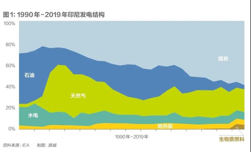 煤炭是全球主要碳排來源之一,更是印尼實現本國碳中和與《巴黎協定》氣候目標的重要掣肘。從印尼本國能源結構看,印尼發(fā)電以煤電為主??稍偕茉匆运?、地熱和生物質發(fā)電為主。