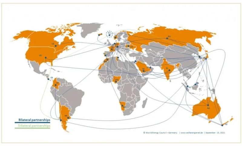 世界能源理事會(World Energy Council)的數(shù)據(jù)顯示,全球氫合作伙伴的數(shù)量正在增加,并可能進(jìn)一步增加。該組織統(tǒng)計(jì)了自2017年以來全球建立的41個(gè)低碳或零碳?xì)涞倪M(jìn)出口合作伙伴關(guān)系,其中大多數(shù)是在過去兩年中建立的??赡艹蔀闅涞膬暨M(jìn)口國的幾個(gè)國家如德國、日本和韓國建立了大量的政府間氫能合作關(guān)系,德國和日本與其他國家建立的伙伴關(guān)系最多,分別有13個(gè)和9個(gè)。澳大利亞、智利和沙特阿拉伯等希望從氫出口中獲得經(jīng)濟(jì)利益并建立氫經(jīng)濟(jì)的國家,在國際上也越來越積極地尋找合作伙伴來建立氫合作。