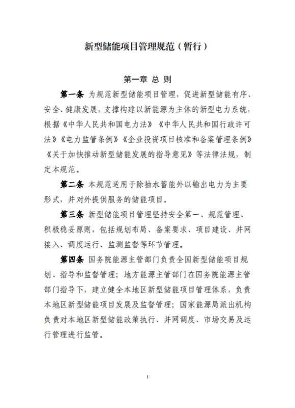 新型儲(chǔ)能項(xiàng)目管理規(guī)范(暫行)