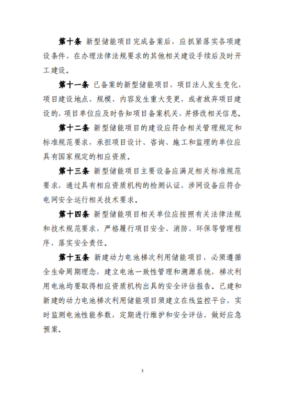第三條 新型儲(chǔ)能項(xiàng)目管理堅(jiān)持安全第一、規(guī)范管理、積極穩(wěn)妥原則,包括規(guī)劃布局、備案要求、項(xiàng)目建設(shè)、并網(wǎng)接入、調(diào)度運(yùn)行、監(jiān)測(cè)監(jiān)督等環(huán)節(jié)管理。