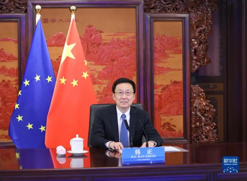 中共中央政治局常委、國(guó)務(wù)院副總理韓正27日在北京通過視頻方式同歐盟委員會(huì)執(zhí)行副主席蒂默曼斯舉行第二次中歐環(huán)境與氣候高層對(duì)話。