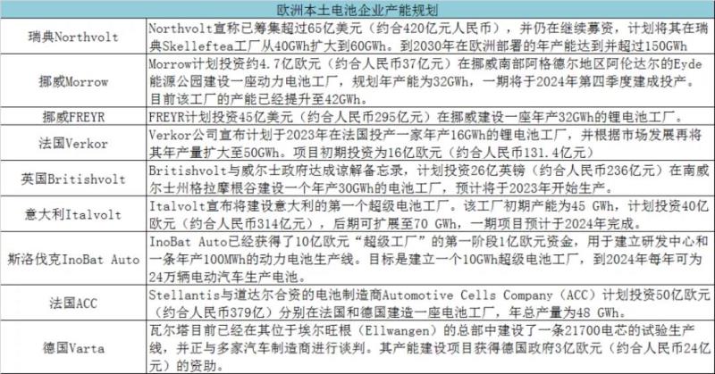 其中,該資助計(jì)劃向Northvolt、ACC等為代表的歐洲本土電池企業(yè)傾斜力度更大,表明歐盟對(duì)建立歐洲本土規(guī)模生產(chǎn)供應(yīng)能力的意愿更為強(qiáng)烈。