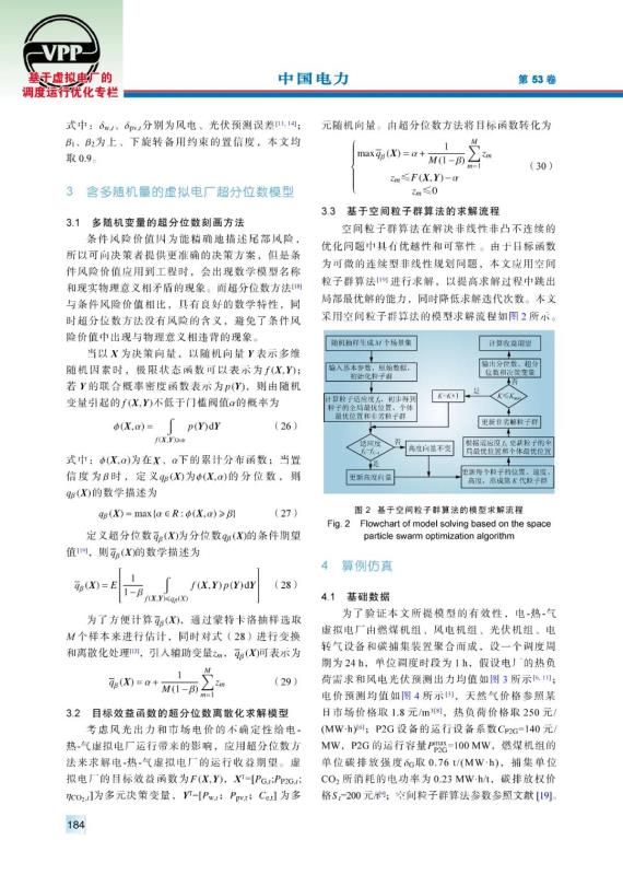 摘要:虛擬電廠總體降低了不確定因素的影響,但若不考慮其內(nèi)部的隨機(jī)性,則會使虛擬電廠在參與電力、天然氣市場過程中,因其調(diào)度方案的保守性,難以獲得最高的經(jīng)濟(jì)效益。為了充分挖掘虛擬電廠的經(jīng)濟(jì)效益,提出了一種氣電市場下計(jì)及電價和風(fēng)光不確定性的電-熱-氣虛擬電廠隨機(jī)優(yōu)化調(diào)度模型。模型目標(biāo)函數(shù)為虛擬電廠總效益,即售電售熱售氣收益與電轉(zhuǎn)氣成本、碳捕集成本、碳排放權(quán)成本和燃料成本之差。引入超分位數(shù)方法將含多隨機(jī)變量的虛擬電廠總效益最優(yōu)模型轉(zhuǎn)化為其超分位數(shù)隨機(jī)優(yōu)化模型,為了便于計(jì)算進(jìn)而處理為其離散化計(jì)算模型,并利用空間粒子群算法進(jìn)行求解。算例分析表明:虛擬電廠通過優(yōu)化售電和售氣方案來獲得最優(yōu)效益,在參與氣電市場過程中考慮多種隨機(jī)變量,使得虛擬電廠規(guī)避風(fēng)險后有更多的機(jī)會獲得更高的經(jīng)濟(jì)效益。