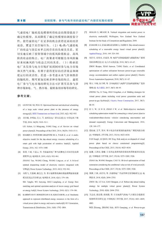 彭院院, 周任軍, 曾子琪, 等. 參與氣電市場的虛擬電廠內(nèi)部優(yōu)化隨機(jī)模型[J]. 中國電力, 2020, 53(9): 181-188.