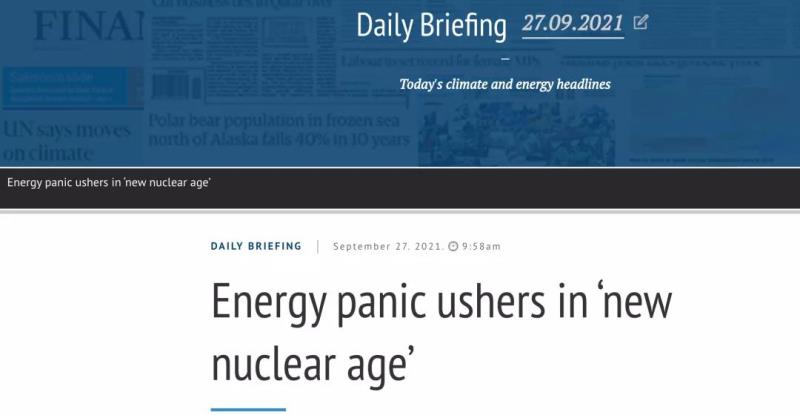 英國媒體繼續(xù)廣泛報道導(dǎo)致英國持續(xù)“能源危機”的各種因素?!缎瞧谌仗┪钍繄蟆钒l(fā)表文章,題為Energy panic ushers in ‘new nuclear age’:(能源恐慌迎來“新核時代”)。