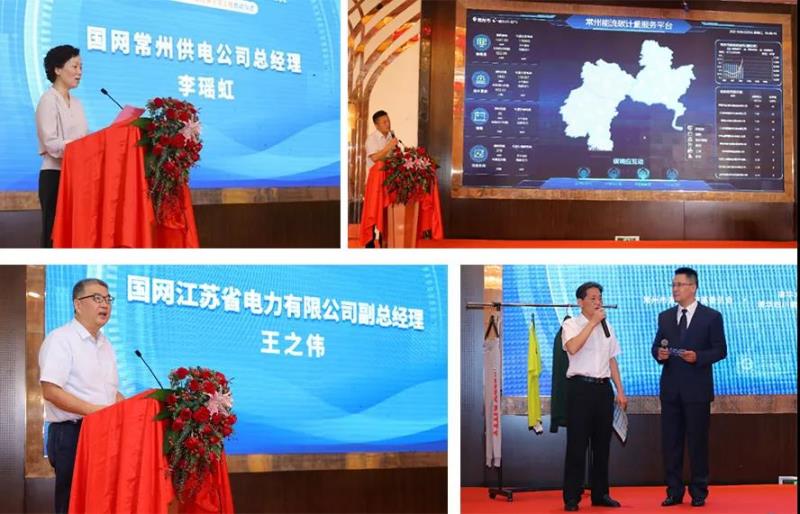 江蘇省發(fā)改委二級巡視員李義、江蘇省電力公司副總經(jīng)理王之偉、清華大學(xué)電機(jī)系主任、清華四川能源互聯(lián)網(wǎng)研究院院長康重慶、常州供電公司總經(jīng)理李瑤虹、常州市發(fā)展和改革委員會副主任朱建江共同按下啟動按鈕,宣布全國首套電力系統(tǒng)“源網(wǎng)荷”實(shí)體碳表裝置與碳管理平臺正式發(fā)布上線。