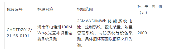 【海南華電儋州100MWp農(nóng)光互補項目儲能系統(tǒng)采購】