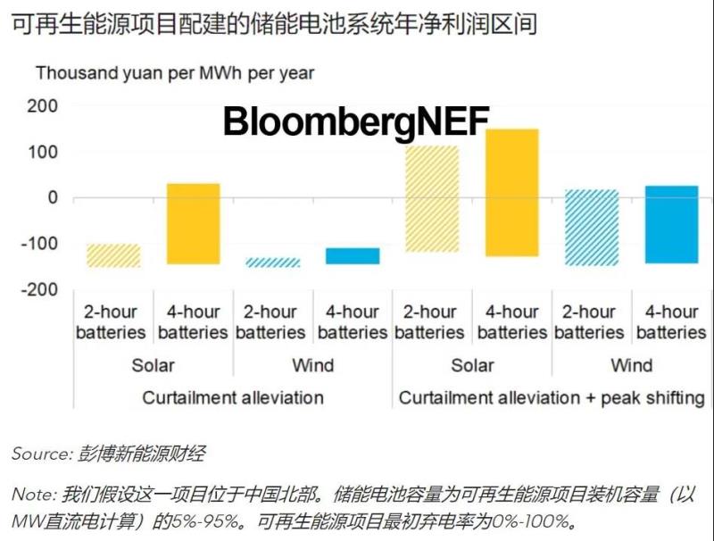 僅用于減少棄風(fēng)棄光的項目僅能勉強達到盈虧平衡。部分配建小型儲能電池系統(tǒng)且面臨嚴(yán)重棄電現(xiàn)象的光伏項目卻處于盈利狀態(tài)。如果能夠獲得調(diào)峰輔助服務(wù)收入,項目收入還能得到提升,從而可有更高比例的配建項目(包括風(fēng)電配建儲能項目)實現(xiàn)盈利。