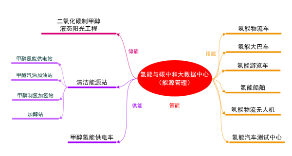 據(jù)了解,圍繞甲醇為載體的能源體系,中氫新能公司正在積極推廣建設(shè)氫能與碳中和示范區(qū)。示范區(qū)包括儲(chǔ)能、供能、用能和管能四個(gè)方面。