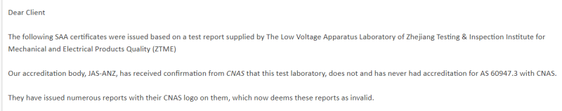 10月1日,澳洲SAA Approvals Pty Ltd發(fā)布重磅消息,正式通知所有通過ZTME實(shí)驗(yàn)室獲得的AS60947.3報(bào)告無效,這也意味著幾乎所有SAA頒發(fā)的隔離開關(guān)證書失效。而從2022年1月1日開始,澳洲市場(chǎng)銷售的外置隔離開關(guān)必須要有新認(rèn)證,而目前僅有通過TüV萊茵澳大利亞本土獲得AS60947.3報(bào)告的隔離開關(guān)才符合澳洲市場(chǎng)要求!