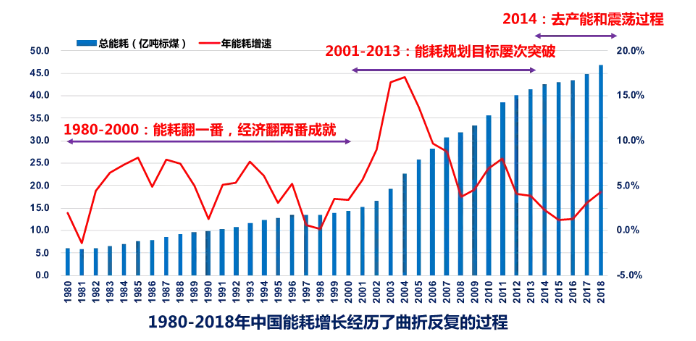 東北限電事件并非第一次出現(xiàn)的重大能源供需問題。過去20年(圖3),我國能源供需情況始終處于能源供需建設(shè)不匹配的震蕩之中。2000年后,因?yàn)槟茉葱枨蟪鲱A(yù)期,屢次突破規(guī)劃值導(dǎo)致能源供應(yīng)手忙腳亂。當(dāng)時(shí)也是一輪全國性的煤電油運(yùn)全面緊張,并刺激了之后能源供應(yīng)產(chǎn)能的建設(shè)。2008年金融危機(jī)之后,不管是能源供應(yīng)和需求的產(chǎn)能建設(shè)都有所放緩,但恢復(fù)經(jīng)濟(jì)的四萬億投資計(jì)劃又刺激了產(chǎn)能建設(shè)并加劇了能源供應(yīng)的產(chǎn)能擴(kuò)張。2014年之后,出現(xiàn)了嚴(yán)重的產(chǎn)能過剩以及供需的震蕩。到現(xiàn)在又再次出現(xiàn)了能源供應(yīng)緊張、缺電限電的局面。這說明我們國家在這方面的能力上仍然有待完善,能源與經(jīng)濟(jì)不協(xié)調(diào)的問題依然存在。能源供應(yīng)的建設(shè)節(jié)奏總是不能及時(shí)地跟上經(jīng)濟(jì)發(fā)展的變化,相互之間總有不協(xié)調(diào)的問題存在。