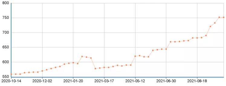 圖 1 環(huán)渤海動(dòng)力煤價(jià)格指數(shù), 元/噸(http://www.cqcoal.com/exp/exponent.jsp)