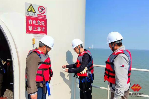 圖為員工在系統(tǒng)上線前對海上風(fēng)機設(shè)備狀態(tài)做測試