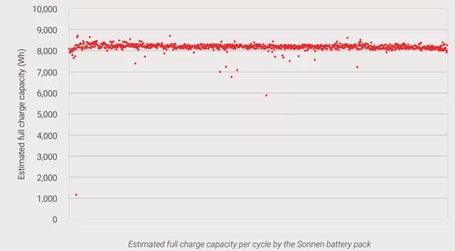 sonnenBatterie的測試情況是800次循環(huán)基本看不出來明顯的衰減。很有趣的是,比亞迪的儲能電池400次循環(huán)下也沒有明顯的衰減。