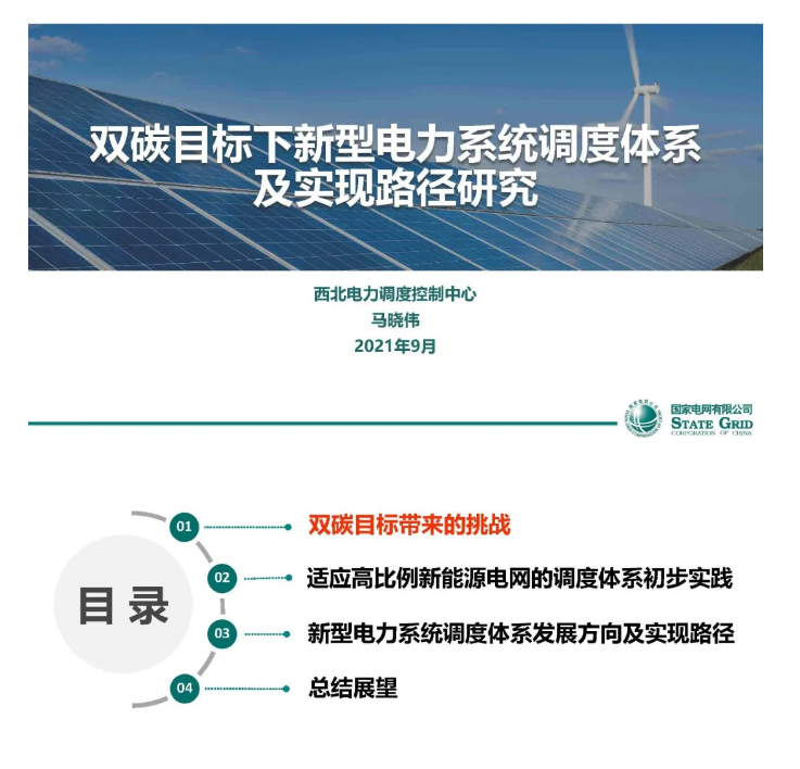 會(huì)上,國家電網(wǎng)有限公司西北分部調(diào)度控制中心主任馬曉偉做了題為“雙碳目標(biāo)下新型電力系統(tǒng)調(diào)度體系及實(shí)現(xiàn)路徑研究”的主旨報(bào)告,經(jīng)專家本人授權(quán),與大家分享。