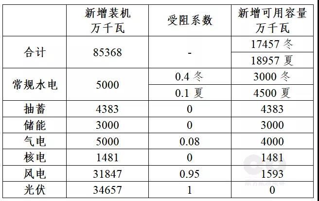 如下表所示,“十四五”新增裝機(jī)約85368萬千瓦,考慮到各種電源的受阻后,新增的可用容量僅17457(冬)-18957(夏)萬千瓦。