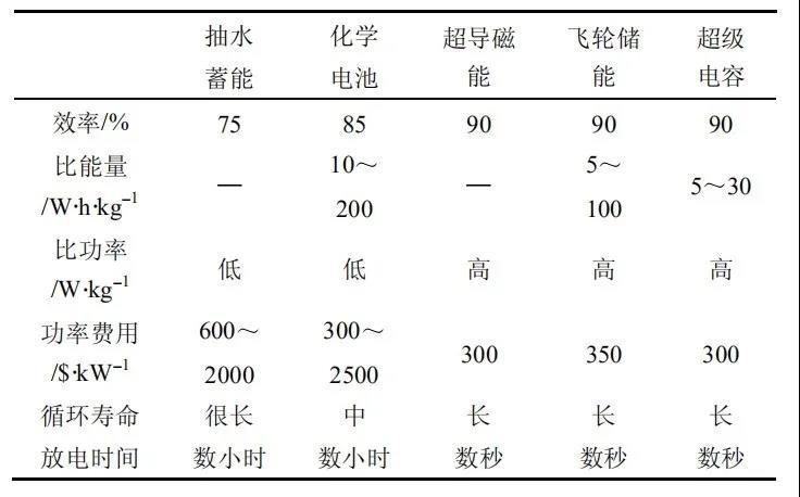 各種儲能方式的技術(shù)對比如表3所示。從中可以看出,飛輪儲能具有效率高(達 90%)、瞬時功率大(單臺兆瓦級)、響應(yīng)速度快(數(shù)毫秒)、使用壽命長(10 萬次循環(huán)和 15 年以上)、環(huán)境影響小等諸多優(yōu)點,是目前最有發(fā)展前途的短時大功率儲能技術(shù)之一。