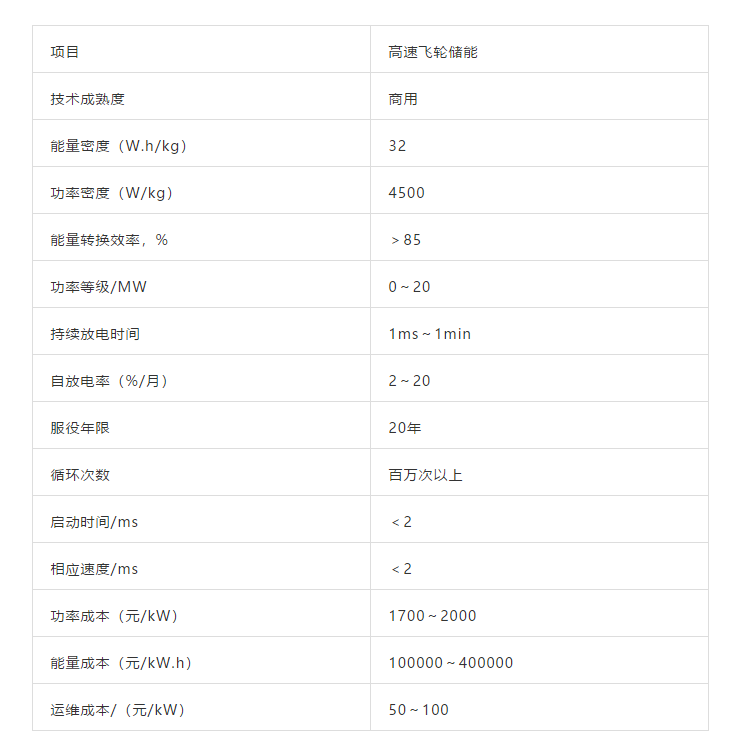 表2. 高速飛輪儲能技術(shù)的性能參數(shù)表
