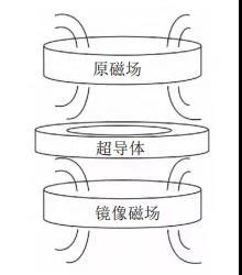 (2)超導磁軸承也是被動磁軸承的一種。超導體在超導環(huán)境下具有邁斯納效應(yīng),當超導體處于磁場中時,其內(nèi)部的磁場恒等于零,即超導體在磁場中表現(xiàn)出完全抗磁性。超導體在磁場作用下其表面產(chǎn)生無損的感應(yīng)電流,該電流在超導體中沒有損耗,同時形成了一個和原磁場大小相等、方向相反的鏡像磁場,如圖 2所示。這種磁場可以使物體穩(wěn)定懸浮。