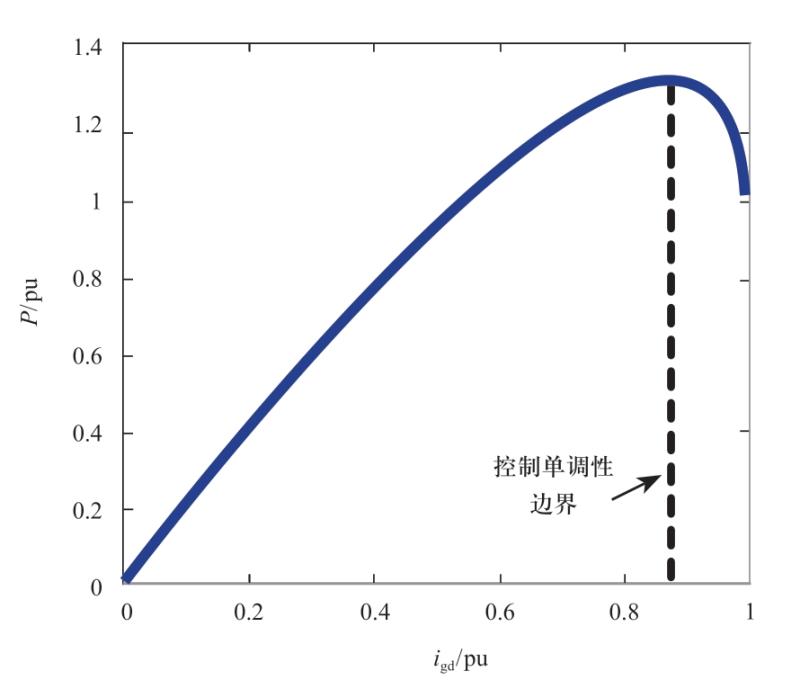 Fig.3 Schematic diagram of monotonicity of active power in current source mode controlled grid-connected inverter
