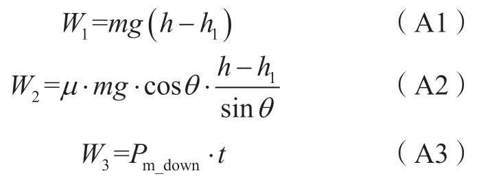 式中:W1為重物在加速階段時的能量損耗;W2為重物下滑過程中的摩擦損耗;W3為重物下滑過程中電動機工作所需的能量;t為重物下滑過程中電動機工作時間。
