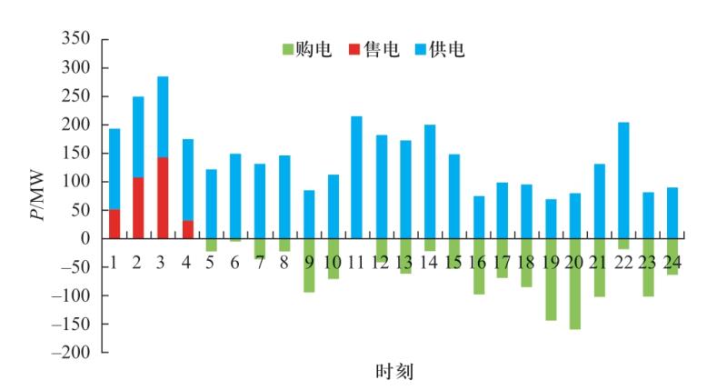 Fig.11 Power supply, power purchase and power sale of planning scheme 2 in a typical day