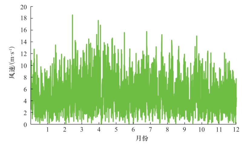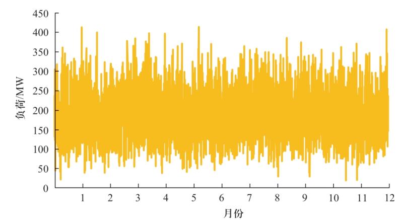 本文選取中國西部某地區(qū)(38o44′N,106o0′E)作為參考,該地區(qū)多為山地,平均海拔2000 m以上,滿足重力儲能建設條件。由中國氣象數據網可知,該地區(qū)每月平均風速如附錄B圖B2所示,利用Weibull分布模擬得到該地區(qū)一年的風速預測數據,如附錄B圖B3所示。該地區(qū)平均光照強度為4.32 kW/m2,在HOMER軟件[25]中,模擬得到該地區(qū)一年的太陽光照強度預測數據,如附錄B圖B4所示。另外,該地區(qū)負荷曲線如附錄B圖B5所示。