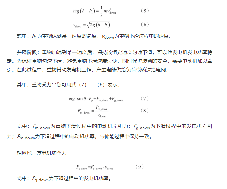 釋放能量過程包括加速階段、并網階段和停運階段,在釋放能量過程中,重物受力包括軌道摩擦力、電動機牽引力、自身重力、發(fā)電機牽引力等。