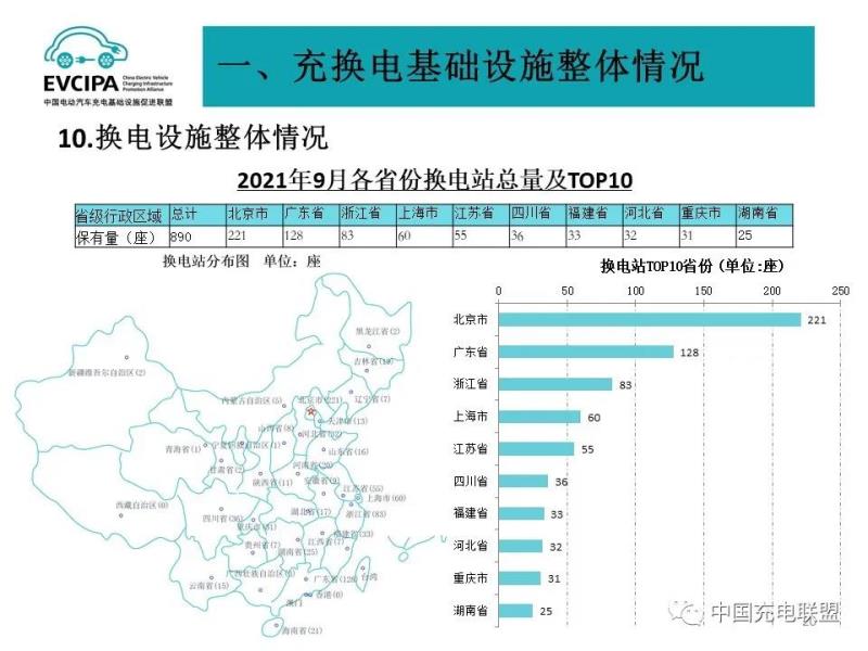 2021年9月全國電動汽車充換電