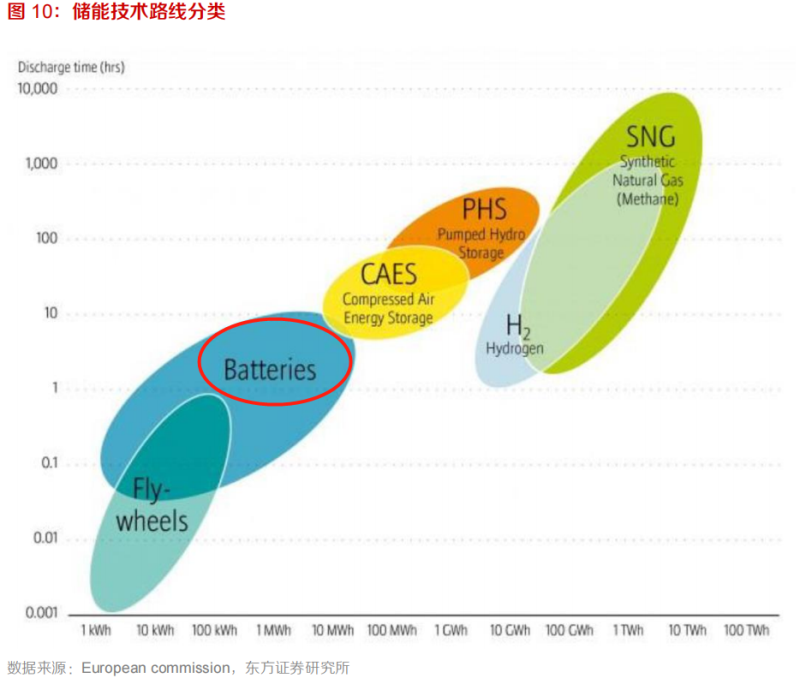 除技術成熟外,抽水蓄能還具有儲能時間長的優(yōu)勢。行業(yè)中往往將儲能時長超過4小時的儲能方式稱為長期儲能,類似的長期儲能還有壓縮空氣儲能、儲氫等,可以用來進行電網(wǎng)調峰、備用容量。