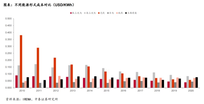 很長一段時間,水力發(fā)電都是成本最低的一種發(fā)電形式,但隨著我國光伏技術突飛猛進的發(fā)展,光伏發(fā)電成本已經(jīng)降至與水電相接近,陸上風電成本更是降至水電之下。