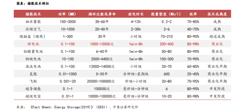 一來是因為動力電池發(fā)展迅猛,鋰電池已經(jīng)成為極為成熟的儲能手段。在所有電化學儲能市場中,接近92%的份額來自于鋰電池儲能,約13.1GW。同時,電化學儲能擁有更高的效率,且已經(jīng)成功商業(yè)化。