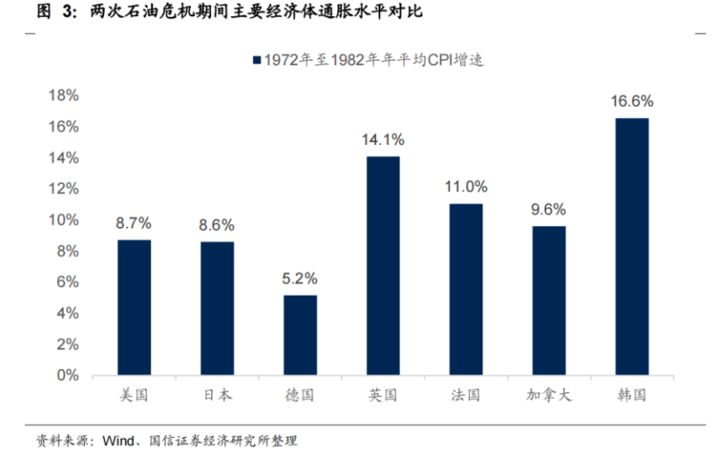 這兩次“能源危機”過后,全球陷入二戰(zhàn)后最嚴重的經(jīng)濟“大通脹”,當時幾大經(jīng)濟強國十年間的CPI增速都在10%左右,韓國甚至一度出現(xiàn)復合年化率16.6%的“超級通脹”。70年代的“能源危機”也被經(jīng)濟學家稱為20世紀全球經(jīng)濟兩大黑暗時刻之一。