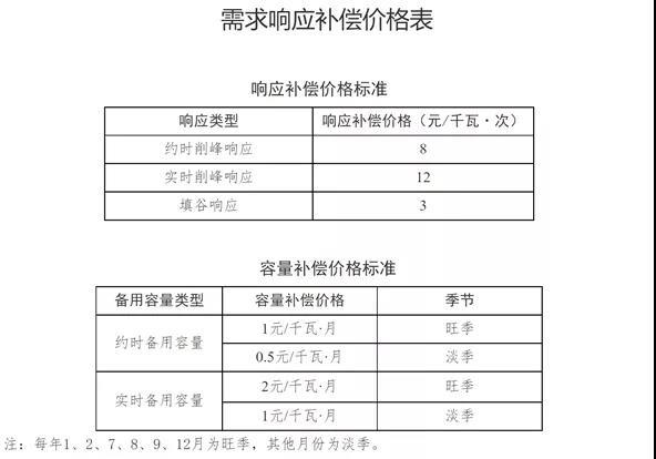 2.需求響應(yīng)補(bǔ)償價(jià)格表