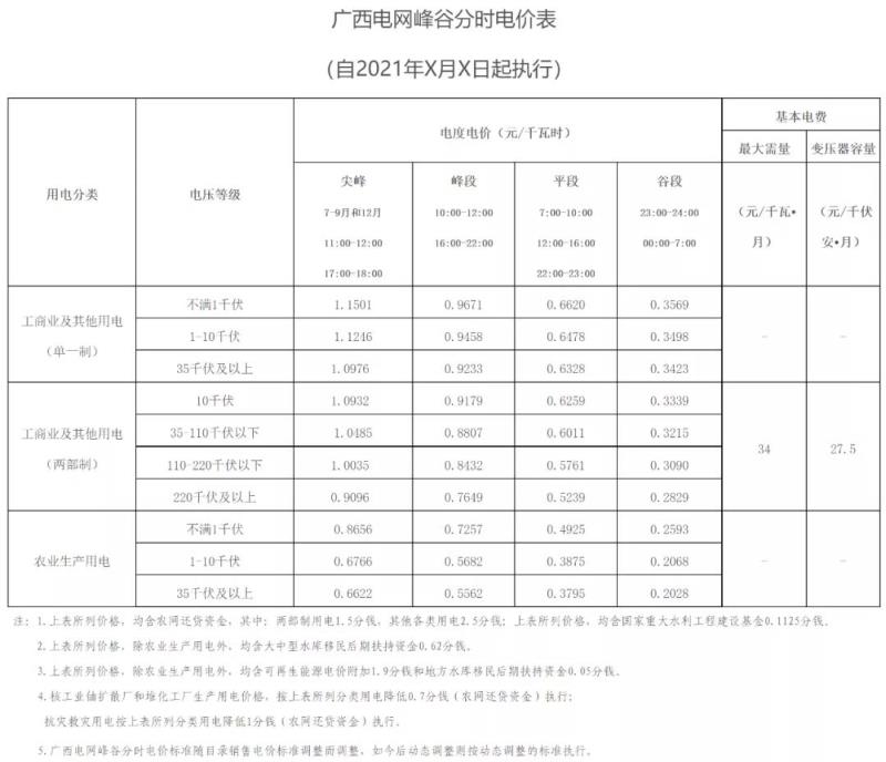 附表:廣西電網(wǎng)峰谷分時電價表(自2021年X月X日起執(zhí)行)