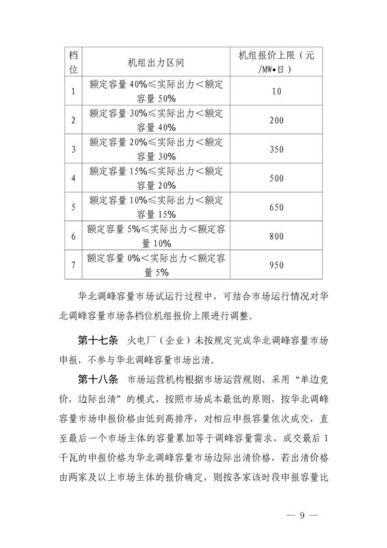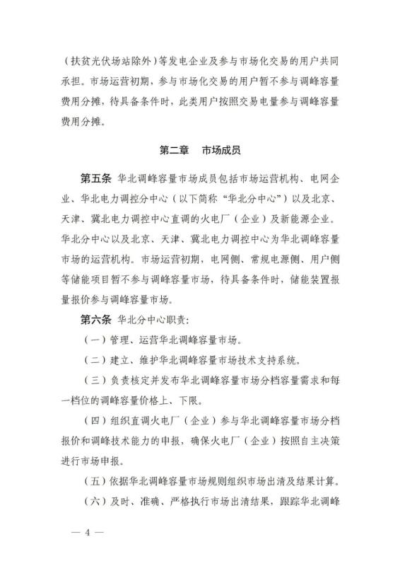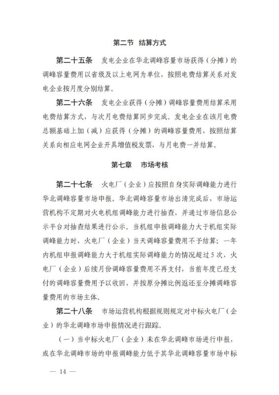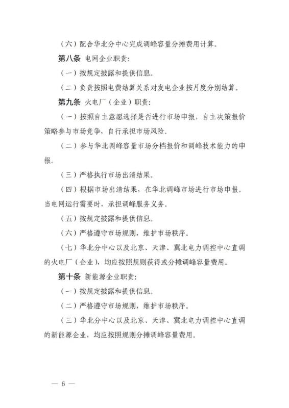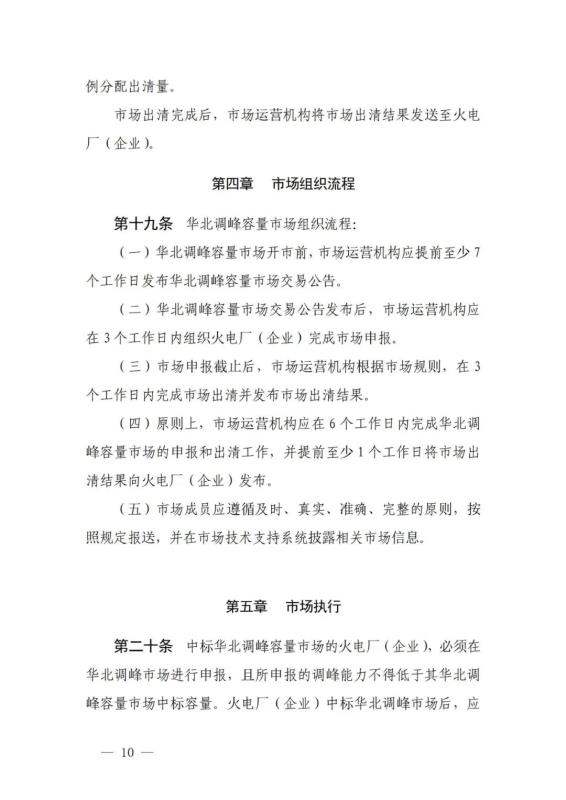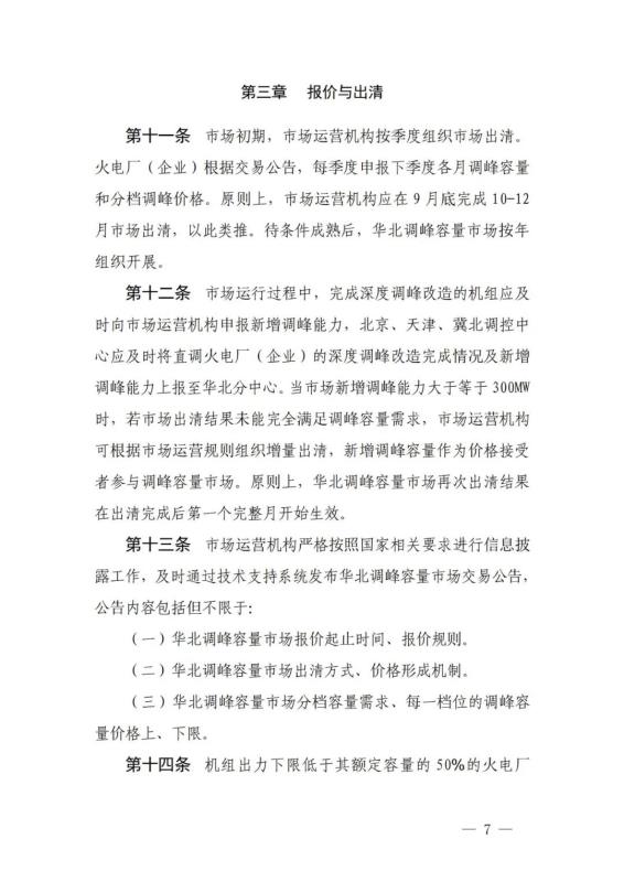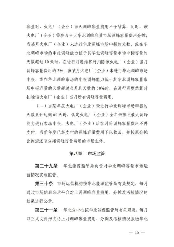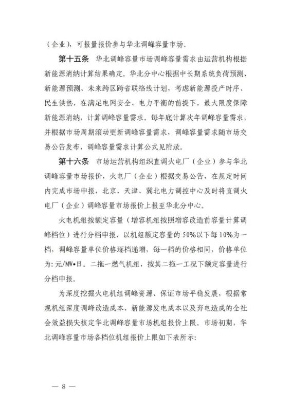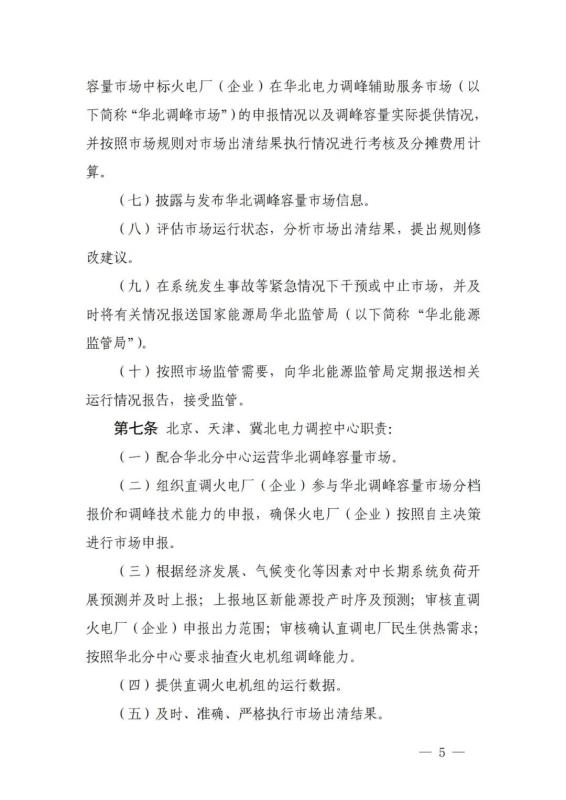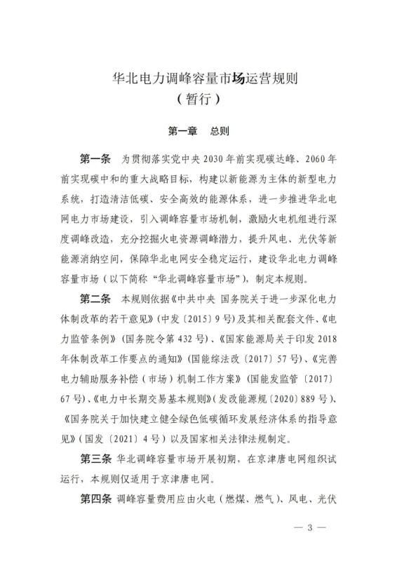 《華北電力調(diào)峰容量市場(chǎng)運(yùn)營(yíng)規(guī)則(暫行)》