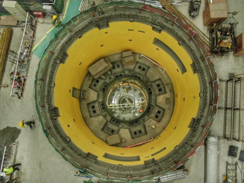 陽江抽水蓄能電站一期容量為120萬千瓦。截至10月21日,項目總體進展86%,電站計劃于2021年底首臺機組投產,2022年3月臺機組全部投產。圖為施工人員正在進行發(fā)電機大軸吊裝作業(yè)。(南網傳媒全媒體記者 李志杰 通訊員 丁卯 楊惠平 陳海東 攝)