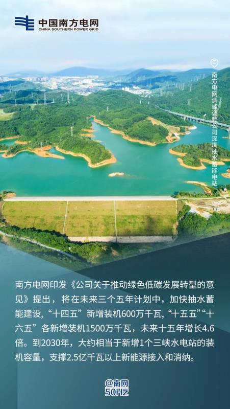 10月24日,南方電網公司召開抽水蓄能建設動員會。南方電網公司正在加快推進廣東肇慶浪江、惠州中洞、廣西南寧等一批抽水蓄能電站建設,有力支撐以新能源為主體的新型電力系統(tǒng)構建,服務國家“碳達峰、碳中和”目標。