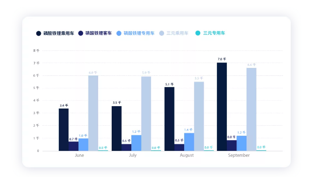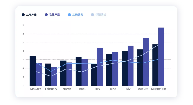 9月國內(nèi)動力電池裝機數(shù)據(jù)顯示:9月三元電池裝車6.14GWh,磷酸鐵鋰電池共計裝車9.54Wh,磷酸鐵鋰電池連續(xù)3個月在裝車量方面領先于三元電池,而且我們看這個增長速度也完全不一樣。