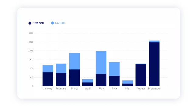如果我們進一步分拆來看,在比亞迪轉(zhuǎn)向刀片電池、乘用車狂推磷酸鐵鋰以后,寧德時代的跟進速度也是有目共睹——依靠特斯拉帶動起很大的量。
