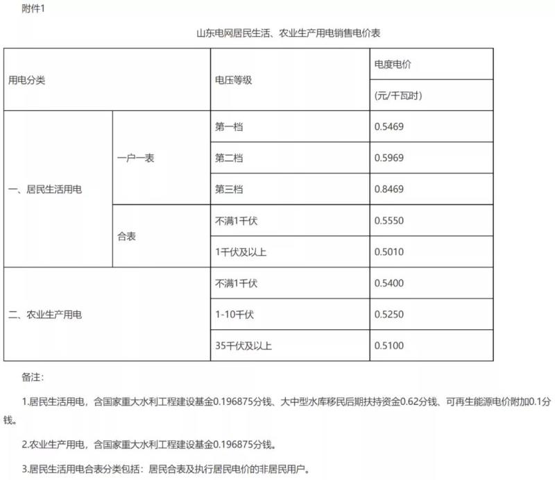 附件:1.山東電網(wǎng)居民生活、農(nóng)業(yè)生產(chǎn)用電銷售電價(jià)表