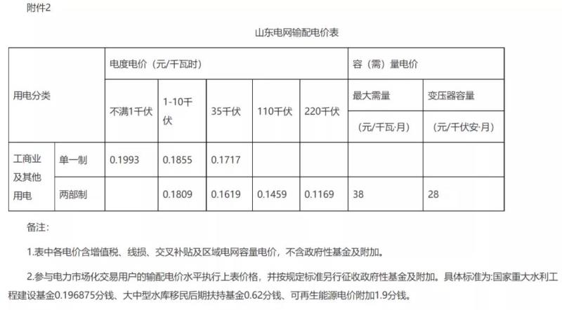 2.山東電網(wǎng)輸配電價(jià)表