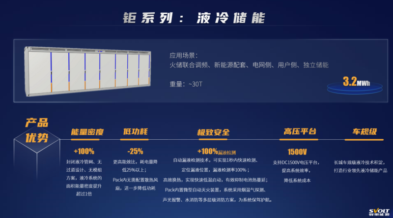 車規(guī)級液冷技術(shù)積淀,打造行業(yè)領(lǐng)先的液冷儲能產(chǎn)品,體積能量密度提升100%,能耗降低25%,可廣泛應(yīng)用于火儲聯(lián)合調(diào)頻、新能源配套、電網(wǎng)側(cè)、用戶側(cè)、獨(dú)立儲能等場景。