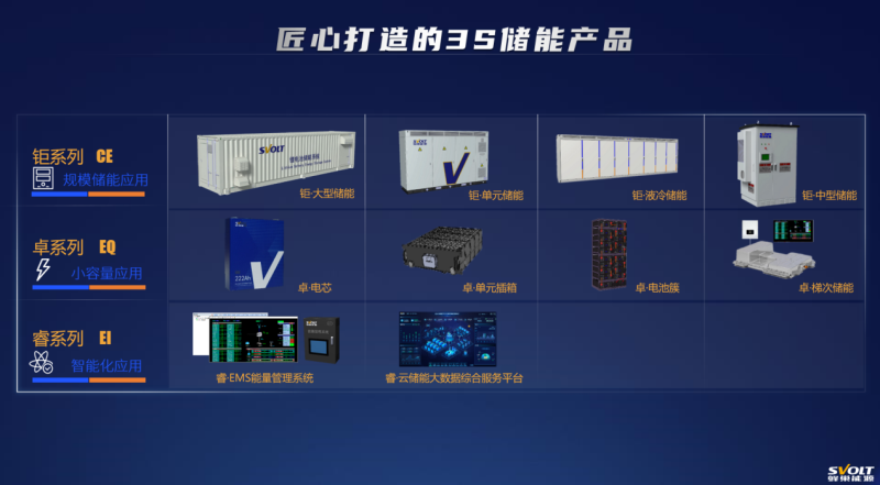 基于3S儲能理念,蜂巢能源推出鉅、卓、睿三大儲能系列產(chǎn)品,包含系統(tǒng)級應(yīng)用的大型、單元、中型、戶用、移動儲能;面向直流應(yīng)用的電池簇、基站、房車等特種電源及梯次儲能產(chǎn)品;智能化方面,開發(fā)了面向區(qū)域能源的能量管理系統(tǒng)和云儲能大數(shù)據(jù)綜合服務(wù)平臺。